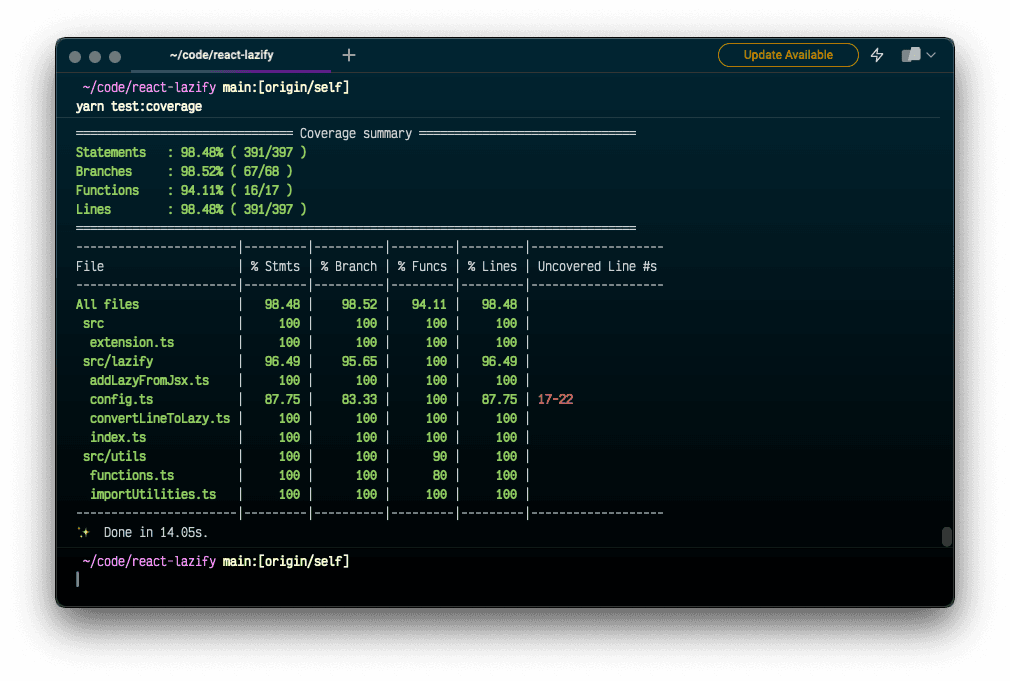 Tested on Mac, Linux, and Windows OS with 98% test coverage. Though I would typically prefer to write my tests with Jest. Mocha integrates well with the VS Code environment and its always better to choose the right tool for the job.