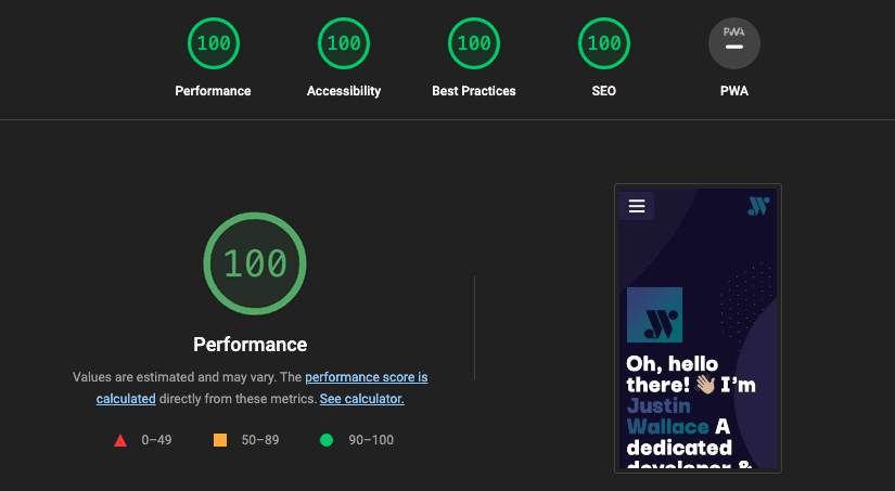 Though using Next13's default React server components makes it pretty easy, it still makes you need to rethink your state management and architecture. In doing so I was able to hit 100 on all required KPI's for the lighthouse ranking system